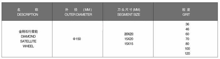 Diamond Satellite Wheels are used to make rough grinding on ceramic tiles surface after calibrating, whose function is same as Diamond Cylindrical Wheel when working, the high-efficient grinding effect is generated to make ceramic tiles surface more flat and smooth, with which the polishing speed can be increased, the consumption of polishing abrasives can be reduced and the re-polishing rate can be lowered. Our satellite wheels are approved for their high grinding efficiency, fine & even grinding mark and good flatness on ceramic tiles surface.